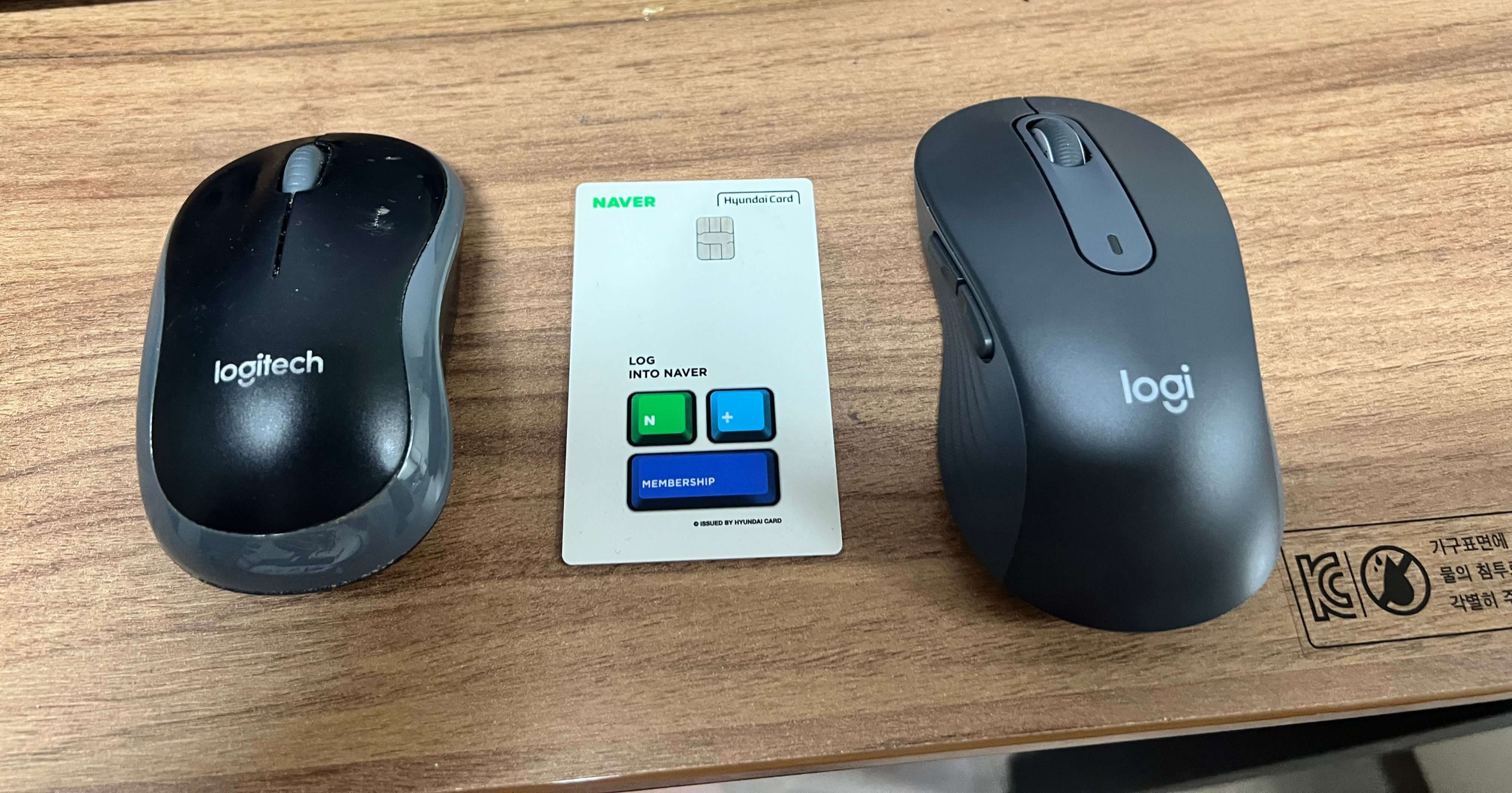 기존에 사용하던 M185와 신용카드 M650L 비교 사진입니다. 어느정도인지 체감이 되실 것입니다.