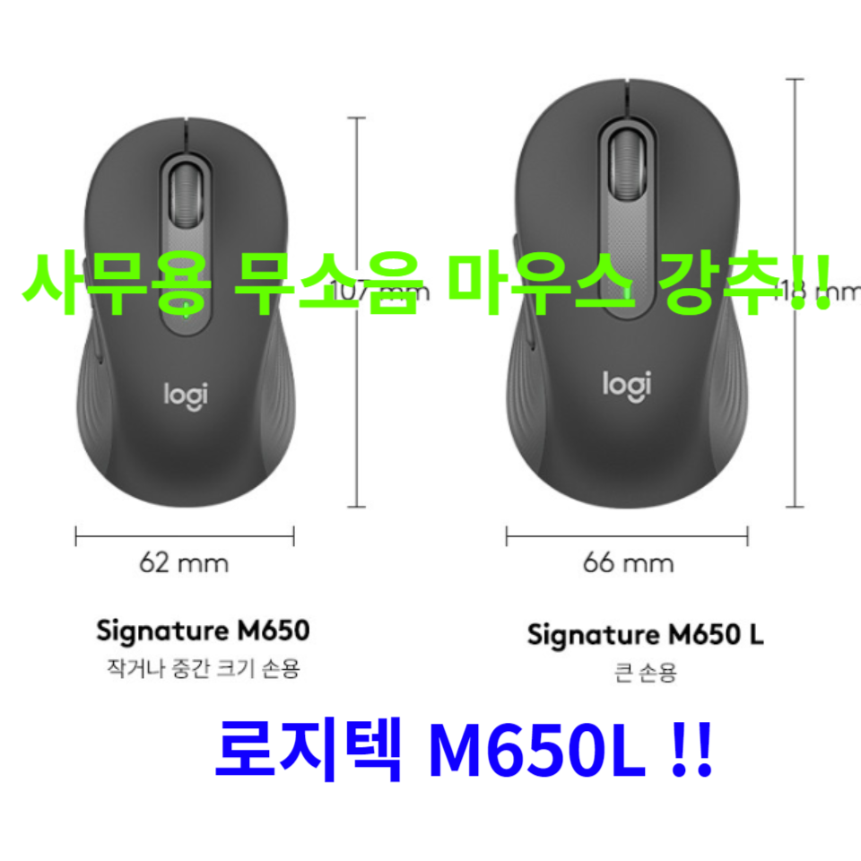 사무실에서 도서관에서 사용할 조용하고 큰 마우스 찾으신다면 로지텍 M650L 추천드립니다. 다들 사무용 마우스 하면 로티텍 MX Master 생각하실 겁니다. 저도 그 생각했습니다. 하지만 너무 비싸고 디자인이 나 비싼 마우스 사용해요, 이런 느낌이라서 구매를 꺼렸습니다. 그러다 적정한 가격과 디자인인 제품을 찾게 되었습니다. 바로 M650L입니다. 현재 너무 좋아서 1년째 사용중입니다. 3개 구매해서 사무실1개,집에서 2개 사용 중입니다. 사용기와 장. 단점에 대해 알려드리겠습니다.