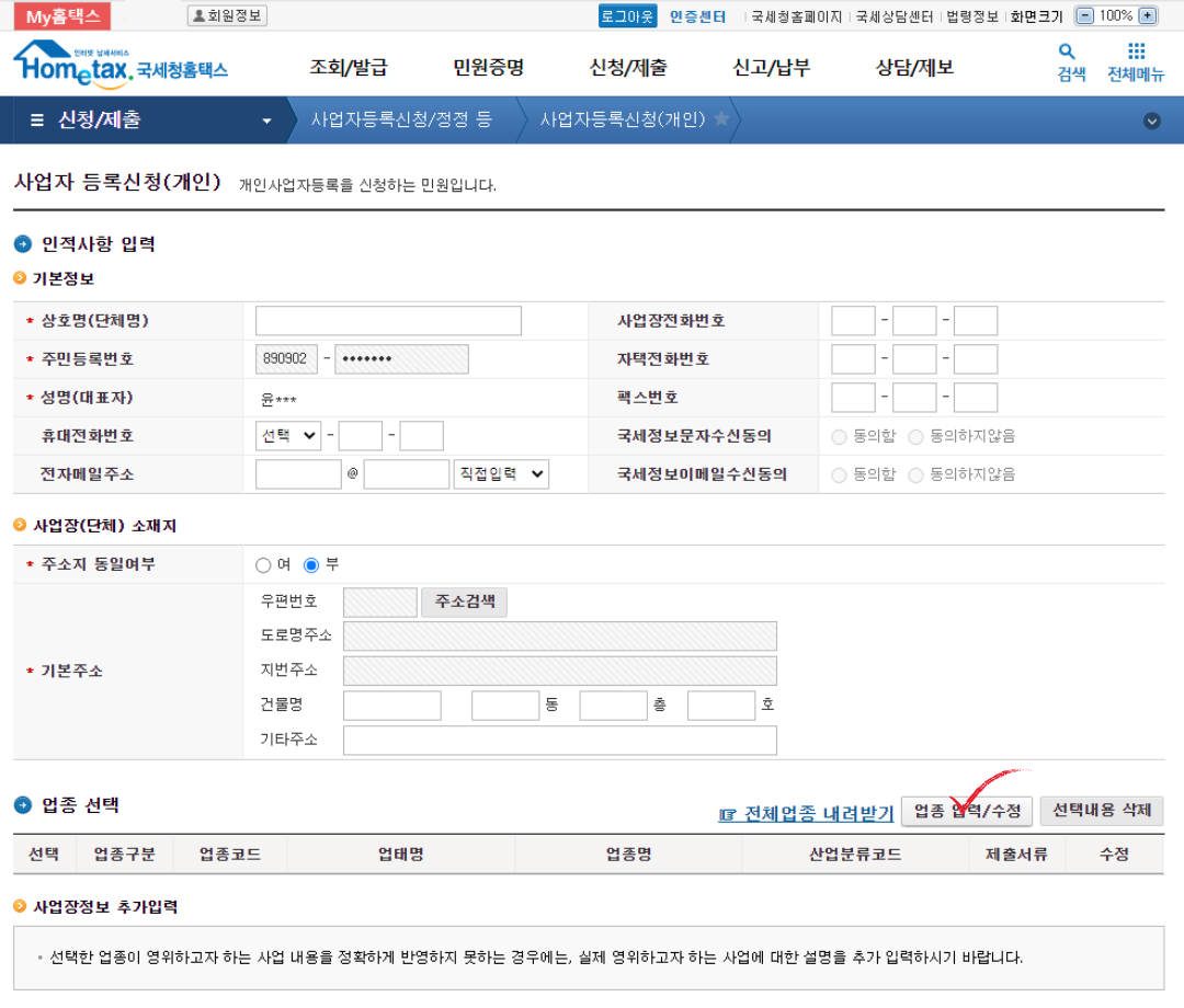 가장 얘먹을것이 "사업장 주소", "업종 선택"일 것이다.