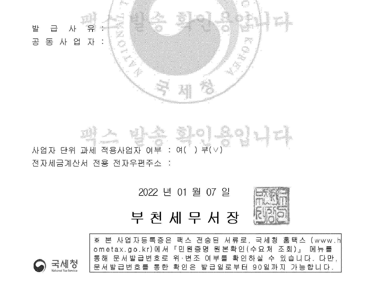 5. 사업자등록증 수령