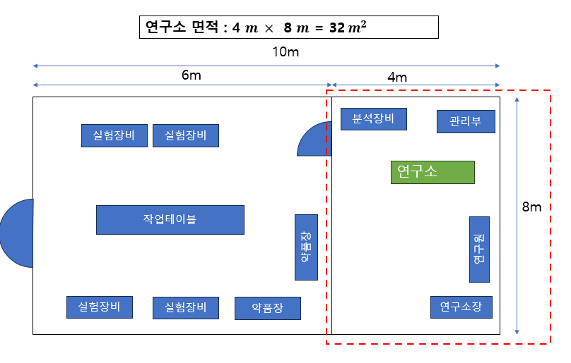 - 연구소 면적이 50미터제곱 이하여야 되는 이유가 있습니다. 뭐 현실적으로 자금이 문제이기 하지만 50미터 제곱이하의 경우 문이 달린 방이 필요 없습니다. 파티션, 책장등으로 구분해서 연구소로 지정할 수 있습니다. 이 이상이 넘어가면 사방이 막힌 완전한 방이 있어야 합니다. 추가적인 내용은 평면도에서 알려드리겠습니다.