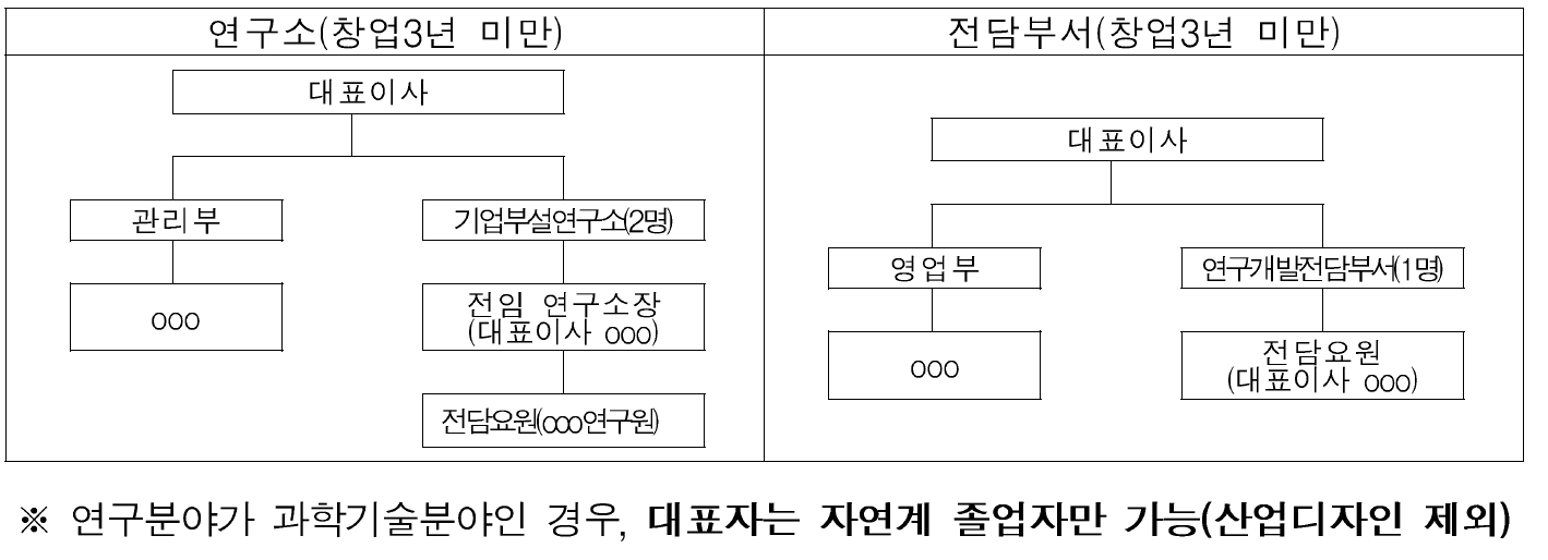 - 대표자 포함 3명이라고 했습니다. 대표자, 연구자1은 연구소 소속입니다. 나머지 한 명은 관리부 또는 영업부 소속으로 해야 합니다. "연구 행정"과 다른 사람입니다. 이 사람은 연구소와 별도로 타 업무를 하는 역할을 하게 됩니다.