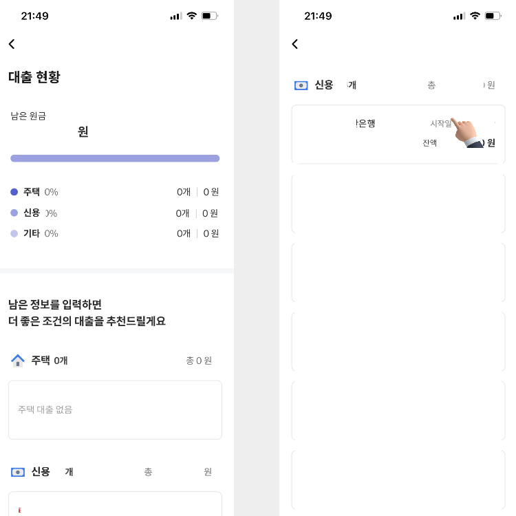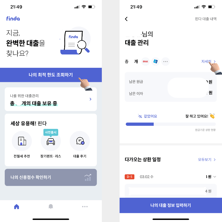 여러분들은 대출을 얼마나 가지고 계시나요? 저도 이것저것 해서 쫌 가지고 있습니다. 근데 매달 돈을 내긴 하는데 얼마나 남았는지, 만기가 언제인지 각 은행마다 확인하기 귀찮고 힘이 듭니다. 그래서 요즘 각종 은행 어플, 대출 어플들에서 내용을 볼 수 있지만 간혹 정부 대출(햇살론, 새희망홀씨)나 2 금융 대출의 경우 안 보이는 경우가 있더라고요. 또 남은 금액이 아닌 한도만 보여주는 경우가 있습니다.