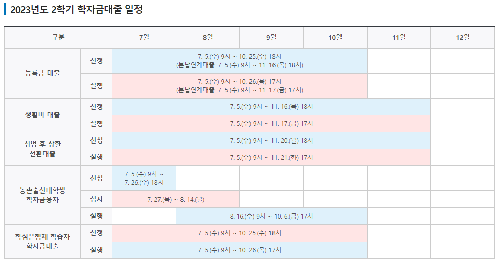 - 생활비 대출 실행 : 2023.7.5(수) 9시 ~ 23년 11월 17(금) 17시까지