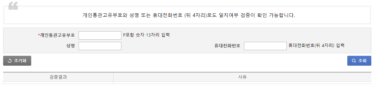 그렇기 때문에 가족이나 친구들의 개인통관부호를 받았을경우 이게 맞는지 확인이 필요해야합니다. 통관부호가 틀리면 국내세관에서 진행이 안되기 때문입니다. 이때 필요한 것이 유효성 검증입니다.